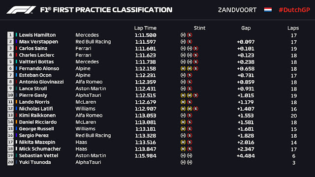 ► E ainda tínhamos uma punição pós corrida para o Stroll (*): 10 segundos acrescidos no tempo final por uma mudança na asa traseira durante a bandeira vermelha.